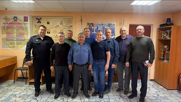 Ветераны органов внутренних дел Дергачевского района достойно встречают юбилей своей организации. Многие востребованы, продолжают трудиться, занимают активную жизненную позицию (25- награждены нагрудным знаком «Знак Почета ветеранов МВД»), среди участников встречи майор полиции в отставке Курмангалиев А.С., он добровольцем ушел на СВО, был ранен, вернулся в строй, награжден Президентом РФ государственной наградой – медалью Жукова.